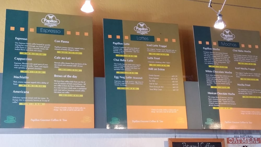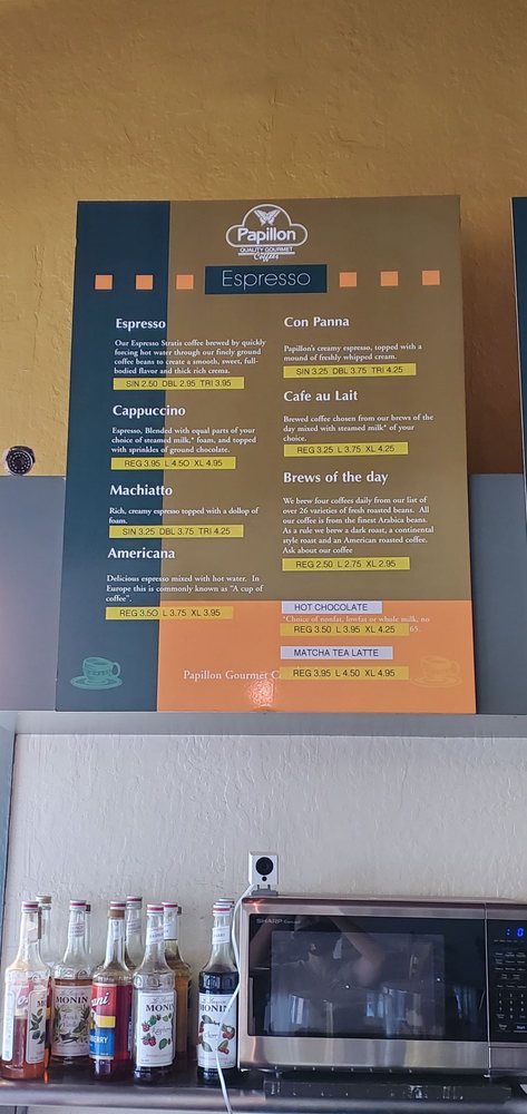 Papillon Quality Gourmet Coffees is a charming mom-and-pop cafe in Lafayette, CA, offering a diverse menu of coffees, teas, lattes, mochas, and more. The ambiance is cozy and welcoming, with plenty of indoor and outdoor seating for customers to enjoy. The service is friendly and accommodating, with a focus on customer satisfaction. Customers praise the delicious coffees and boba teas, as well as the baked goods like pumpkin cream cheese muffins. The menu features a range of breakfast options, including bagels with egg, cheese, and sausage. The clean and comfortable environment, along with the attentive staff, make Papillon a top choice for coffee lovers in the area. Don't miss out on trying their signature drinks like the Papillon Latte or European-inspired mochas. Visit Papillon Quality Gourmet Coffees for a delightful coffee experience that will leave you wanting more.
